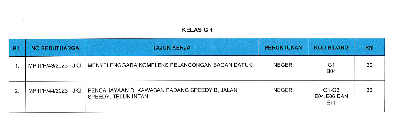 Written by ain.mpti on 14 September 2023. Posted in perolehan. IKLAN SEBUTHARGA JABATAN KEJURUTERAAN SEPTEMBER 2023 Hits: 919 Cetak Seterusnya Seterusnya